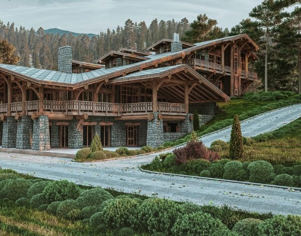 камня в сочетании с деревом